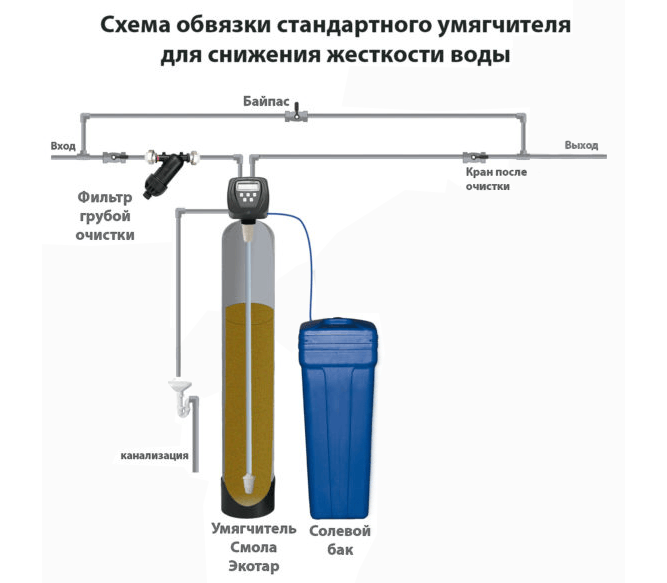 Схема удаления жесткости до 12 мг, железа до 12 мг/л-экв, при минимальных механических примесях